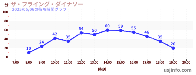 • ザ・フライング・ダイナソー$B$N(B2025年05月06日の待ち時間