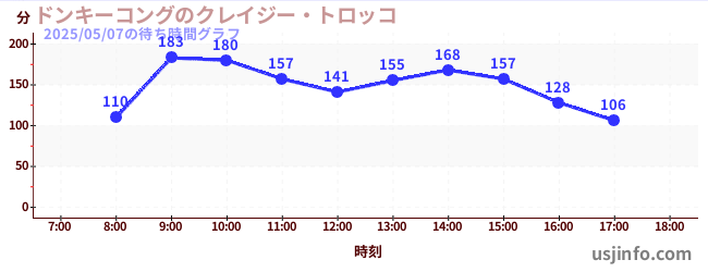 • ドンキーコングのクレイジー・トロッコ$B$N(B2025年05月07日の待ち時間
