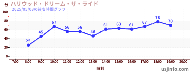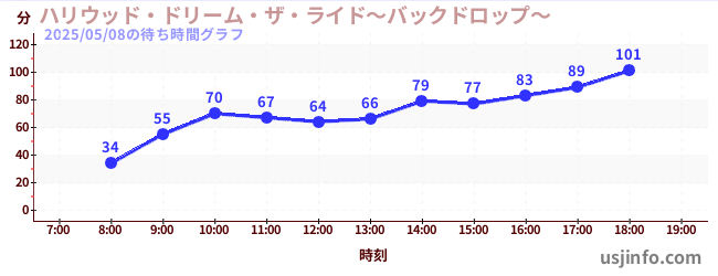 • ハリウッド・ドリーム・ザ・ライド$B$N(B2025年05月08日の待ち時間