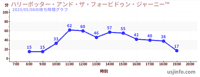 • ハリーポッター・アンド・ザ・フォービドゥン・ジャーニー™$B$N(B2025年05月08日の待ち時間