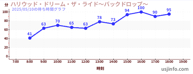 • ハリウッド・ドリーム・ザ・ライド〜バックドロップ〜$B$N(B2025年05月10日の待ち時間