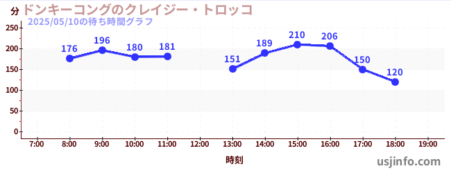 • ドンキーコングのクレイジー・トロッコ$B$N(B2025年05月10日の待ち時間