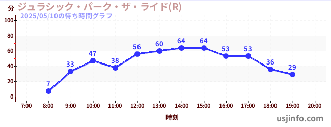 • ジュラシック・パーク・ザ・ライド(R)$B$N(B2025年05月10日の待ち時間