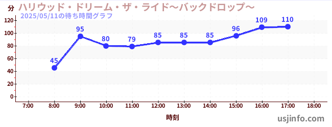 • ハリウッド・ドリーム・ザ・ライド〜バックドロップ〜$B$N(B2025年05月11日の待ち時間