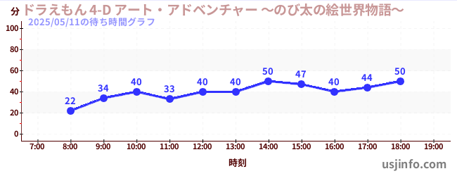 • ドラえもん 4-D アート・アドベンチャー ~のび太の絵世界物語~$B$N(B2025年05月11日の待ち時間