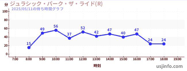 • ジュラシック・パーク・ザ・ライド(R)$B$N(B2025年05月11日の待ち時間