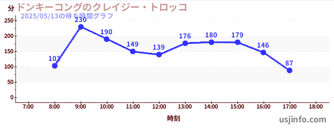 • ドンキーコングのクレイジー・トロッコ$B$N(B2025年05月13日の待ち時間
