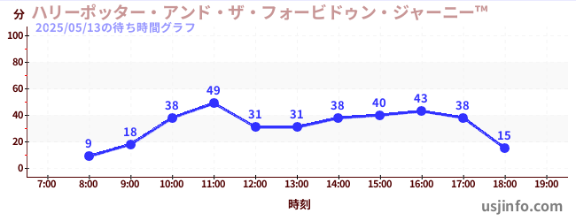 • ハリーポッター・アンド・ザ・フォービドゥン・ジャーニー™$B$N(B2025年05月13日の待ち時間