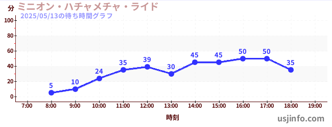 • ミニオン・ハチャメチャ・ライド$B$N(B2025年05月13日の待ち時間