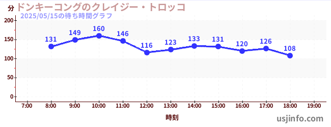 • ドンキーコングのクレイジー・トロッコ$B$N(B2025年05月15日の待ち時間