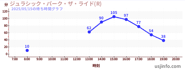 • ジュラシック・パーク・ザ・ライド(R)$B$N(B2025年05月15日の待ち時間