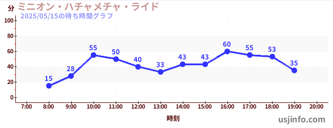 • ミニオン・ハチャメチャ・ライド$B$N(B2025年05月15日の待ち時間