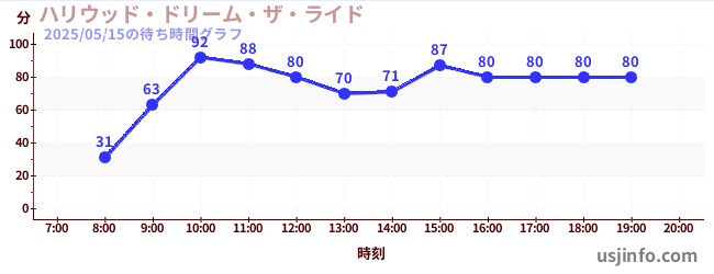 • ハリウッド・ドリーム・ザ・ライド$B$N(B2025年05月15日の待ち時間