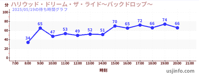 • ハリウッド・ドリーム・ザ・ライド〜バックドロップ〜$B$N(B2025年05月19日の待ち時間