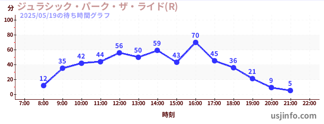 • ジュラシック・パーク・ザ・ライド(R)$B$N(B2025年05月19日の待ち時間