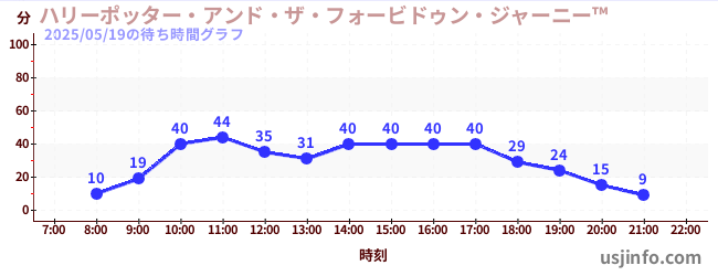 • ハリーポッター・アンド・ザ・フォービドゥン・ジャーニー™$B$N(B2025年05月19日の待ち時間