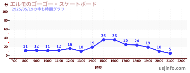 • エルモのゴーゴー・スケートボード$B$N(B2025年05月19日の待ち時間