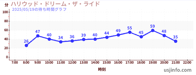 • ハリウッド・ドリーム・ザ・ライド$B$N(B2025年05月19日の待ち時間