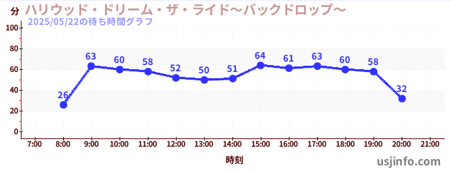 • ハリウッド・ドリーム・ザ・ライド〜バックドロップ〜$B$N(B2025年05月22日の待ち時間