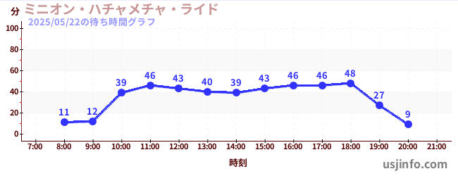 • ミニオン・ハチャメチャ・ライド$B$N(B2025年05月22日の待ち時間