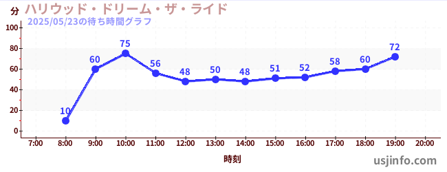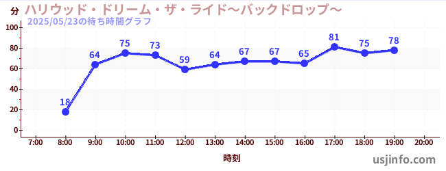 • ハリウッド・ドリーム・ザ・ライド〜バックドロップ〜$B$N(B2025年05月23日の待ち時間