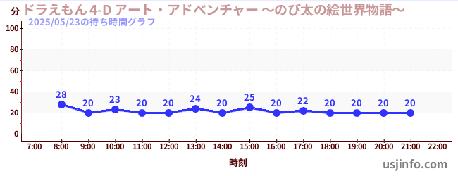 • ドラえもん 4-D アート・アドベンチャー ~のび太の絵世界物語~$B$N(B2025年05月23日の待ち時間