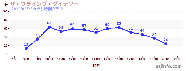 • ザ・フライング・ダイナソー$B$N(B2025年05月23日の待ち時間