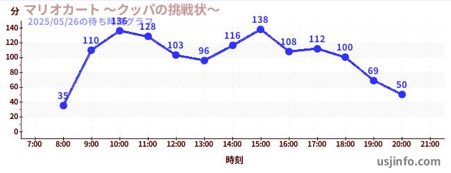 • マリオカート ~クッパの挑戦状~$B$N(B2025年05月26日の待ち時間