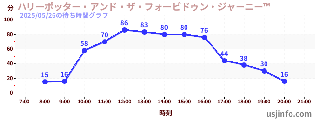 • ハリーポッター・アンド・ザ・フォービドゥン・ジャーニー™$B$N(B2025年05月26日の待ち時間