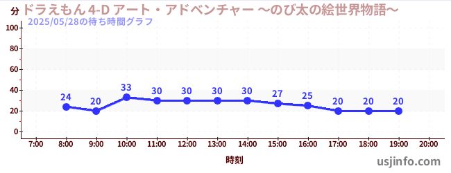 • ドラえもん 4-D アート・アドベンチャー ~のび太の絵世界物語~$B$N(B2025年05月28日の待ち時間