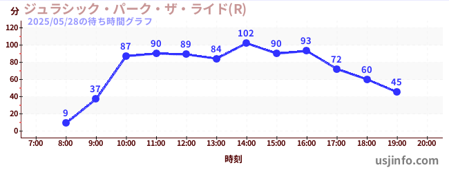 • ジュラシック・パーク・ザ・ライド(R)$B$N(B2025年05月28日の待ち時間