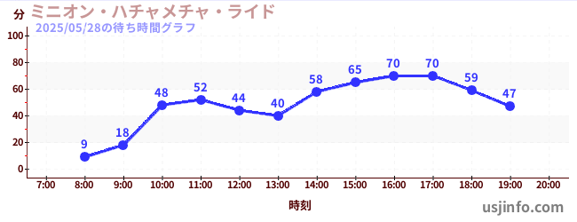 • ミニオン・ハチャメチャ・ライド$B$N(B2025年05月28日の待ち時間