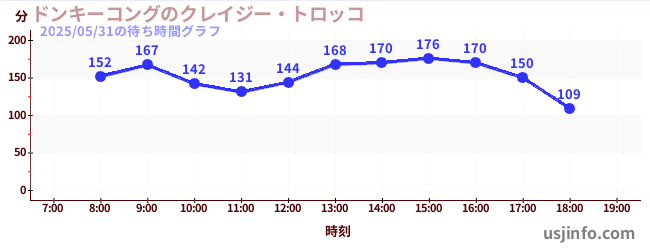 • ドンキーコングのクレイジー・トロッコ$B$N(B2025年05月31日の待ち時間