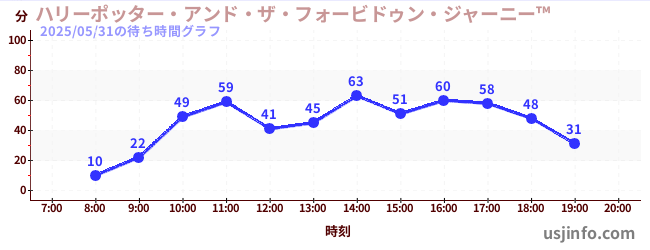 • ハリーポッター・アンド・ザ・フォービドゥン・ジャーニー™$B$N(B2025年05月31日の待ち時間