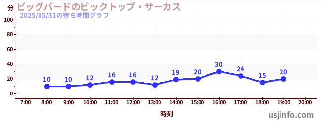 • ビッグバードのビックトップ・サーカス$B$N(B2025年05月31日の待ち時間
