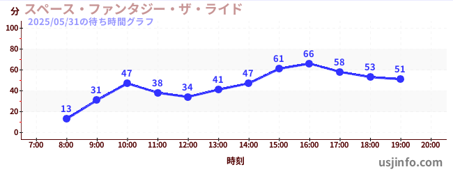 • スペース・ファンタジー・ザ・ライド$B$N(B2025年05月31日の待ち時間