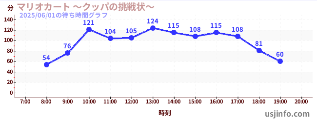 • マリオカート ~クッパの挑戦状~$B$N(B2025年06月01日の待ち時間