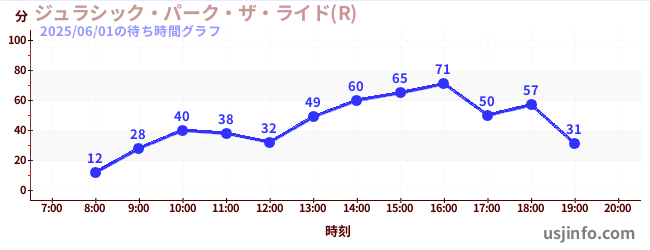 • ジュラシック・パーク・ザ・ライド(R)$B$N(B2025年06月01日の待ち時間