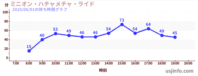 • ミニオン・ハチャメチャ・ライド$B$N(B2025年06月01日の待ち時間
