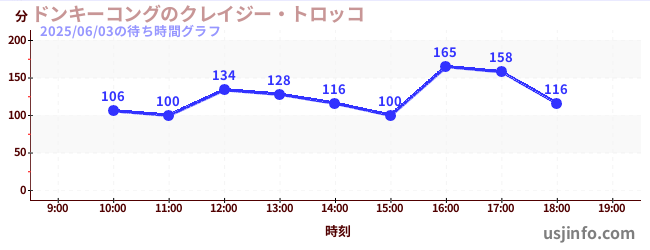 • ドンキーコングのクレイジー・トロッコ$B$N(B2025年06月03日の待ち時間