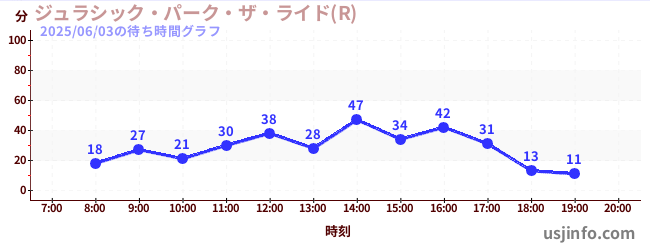 • ジュラシック・パーク・ザ・ライド(R)$B$N(B2025年06月03日の待ち時間