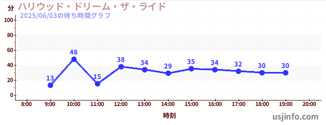 • ハリウッド・ドリーム・ザ・ライド$B$N(B2025年06月03日の待ち時間