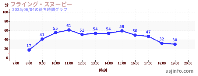 • フライング・スヌーピー$B$N(B2025年06月04日の待ち時間