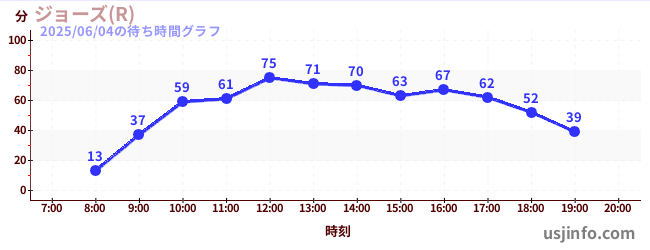 • ジョーズ(R)$B$N(B2025年06月04日の待ち時間