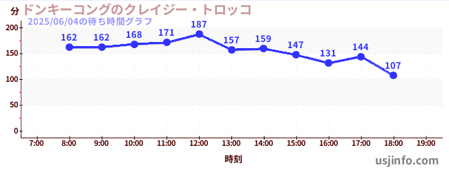 • ドンキーコングのクレイジー・トロッコ$B$N(B2025年06月04日の待ち時間