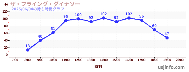 • ザ・フライング・ダイナソー$B$N(B2025年06月04日の待ち時間