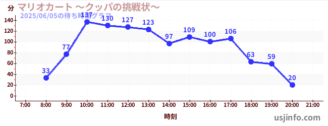 • マリオカート ~クッパの挑戦状~$B$N(B2025年06月05日の待ち時間
