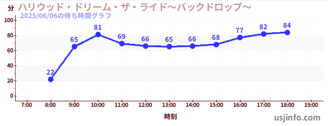 • ハリウッド・ドリーム・ザ・ライド〜バックドロップ〜$B$N(B2025年06月06日の待ち時間