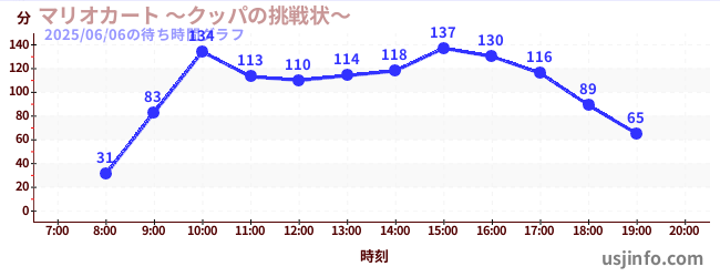 • マリオカート ~クッパの挑戦状~$B$N(B2025年06月06日の待ち時間