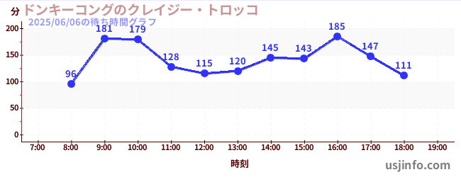 • ドンキーコングのクレイジー・トロッコ$B$N(B2025年06月06日の待ち時間